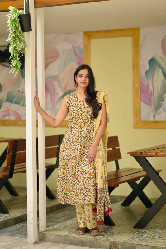 It is paired with matching printed pants and a lightweight dupatta that adds a graceful finish to the outfit. The fabric is breathable and easy to wear, making it perfect for long hours — whether you’re at home, stepping out, or attending a small gathering.