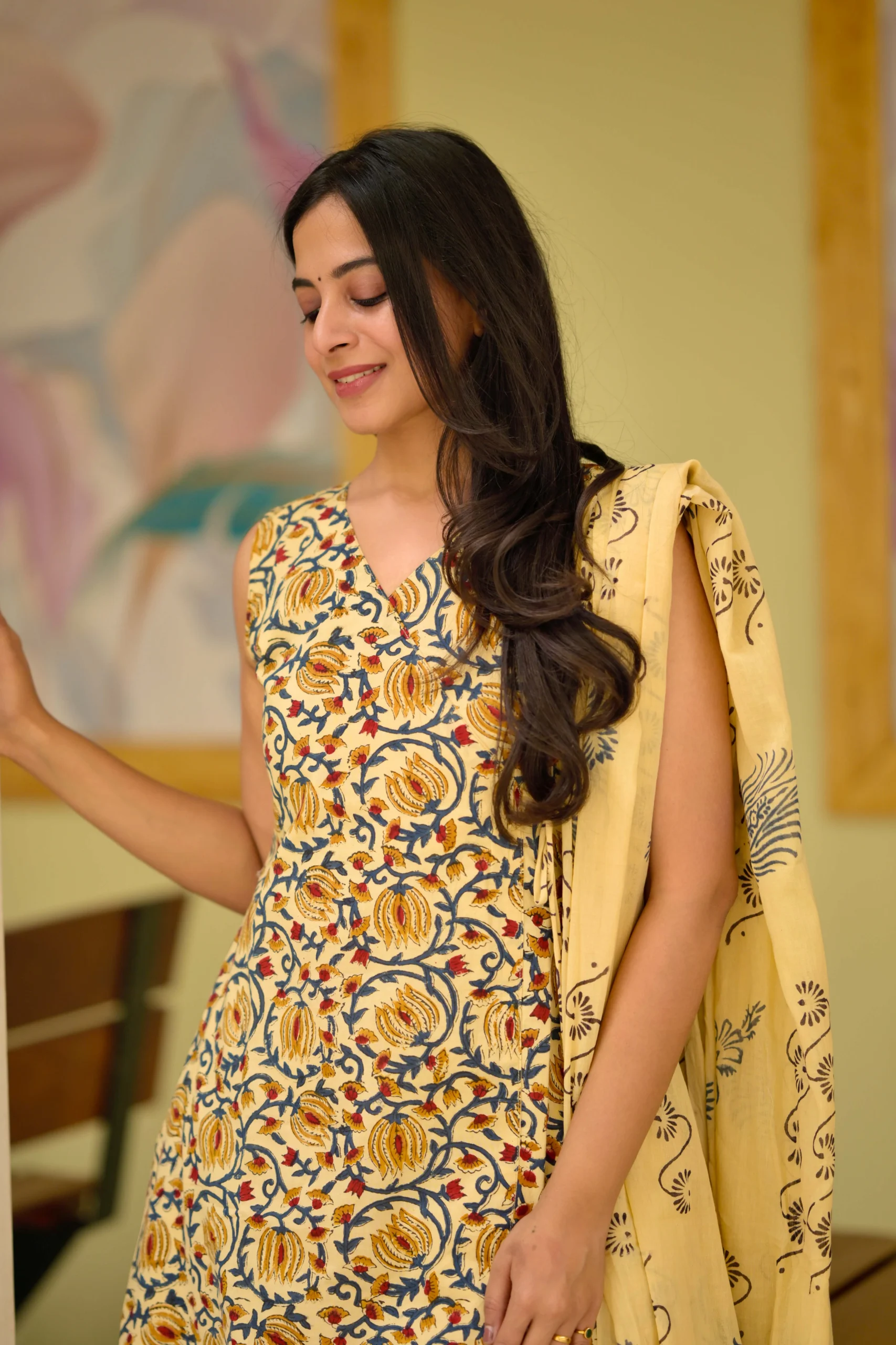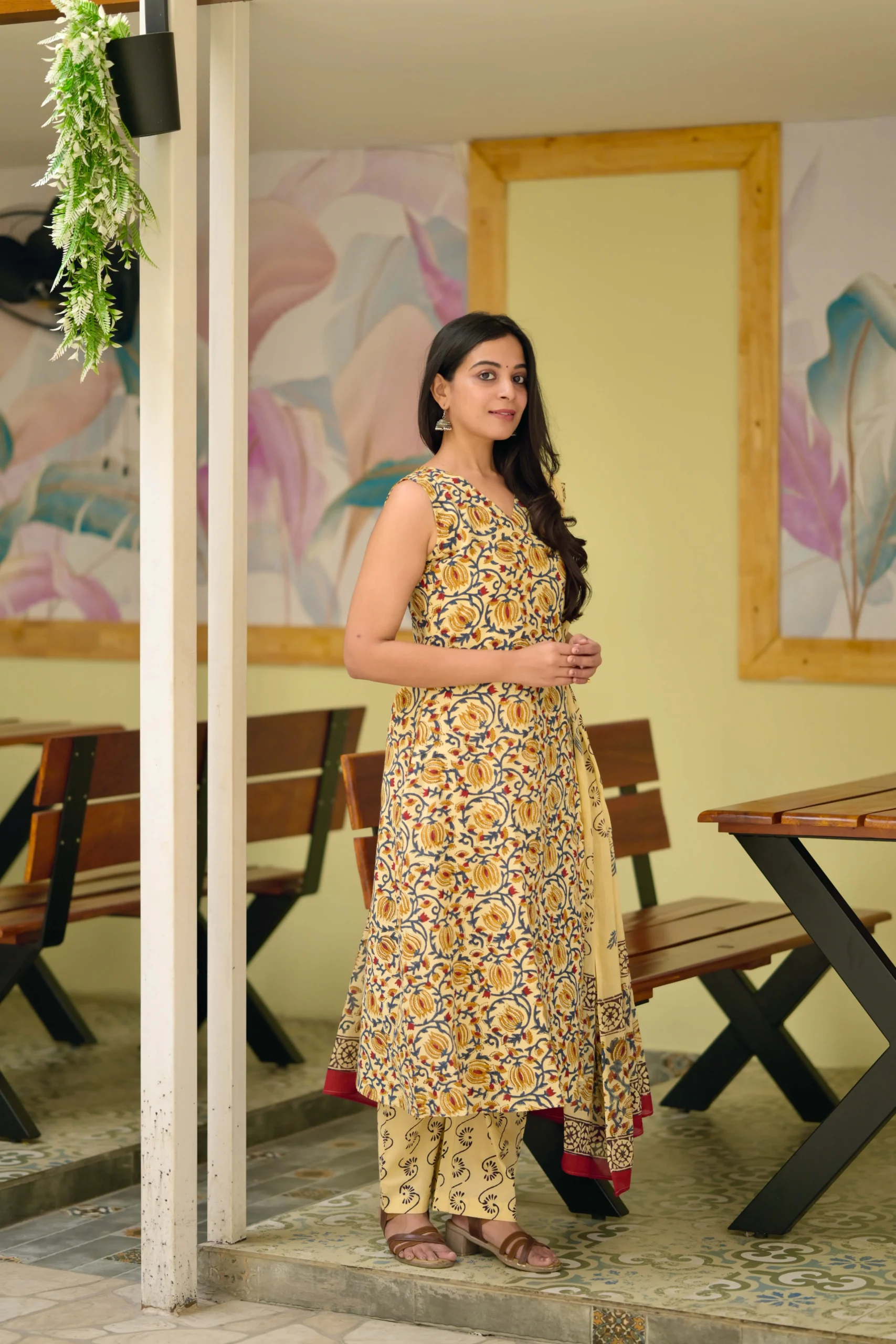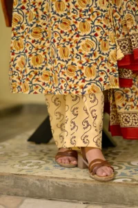 The sleeveless kurta paired with easy-fit pants makes it ideal for casual outings, small gatherings, or relaxed workdays. The subtle color palette and elegant detailing give it a refined look without being overdone.Sleeves Attached if needed.
