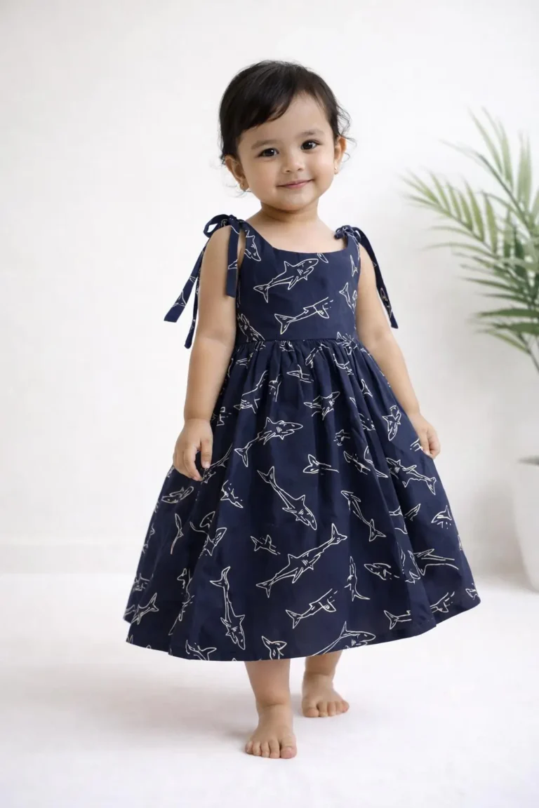 Let your little one dive into comfort and play with this adorable shark print frock, designed for everyday adventures πβ¨