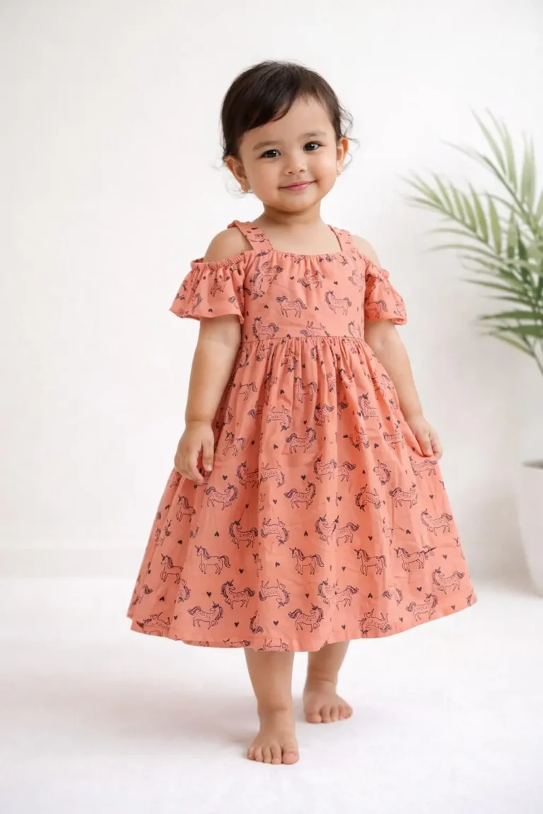 Bring a little magic into your childβs everyday wardrobe with this adorable unicorn print frock, designed for comfort, play, and endless smiles π