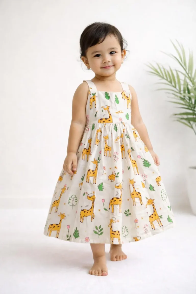 Let your little one step into a world of fun and imagination with this adorable safari print frock, designed for comfort, play, and everyday adventures β¨